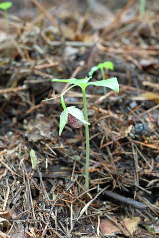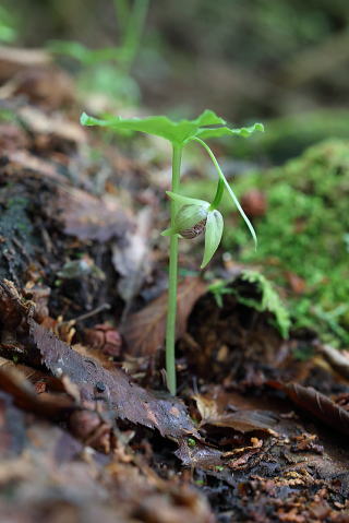 かなり小さく、あまり目立たないランなのですが、その小さな花に同じ仲間のアツモリソウやクマガイソウの要素を凝縮させているのがすごいところです。 |