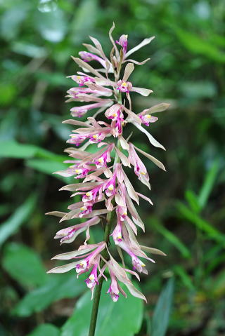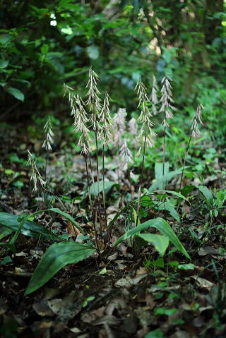 花茎からほぼ90度に近い角度で花を咲かせるサイハイランです。このあと花が徐々に下をむいてきてしまうので、ちょうど見ごろの状態でした。 15.5.24 東京都 |