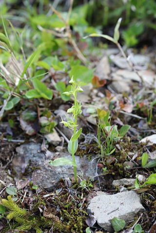 生えているところが高山帯ということもあり、とても爽やかな印象のランです。ほかの高山植物がかなりカラフルな色をしているなか、このランはあまり目立たないので、多くの登山者がわき目もくれず通り過ぎてしまいます。 |